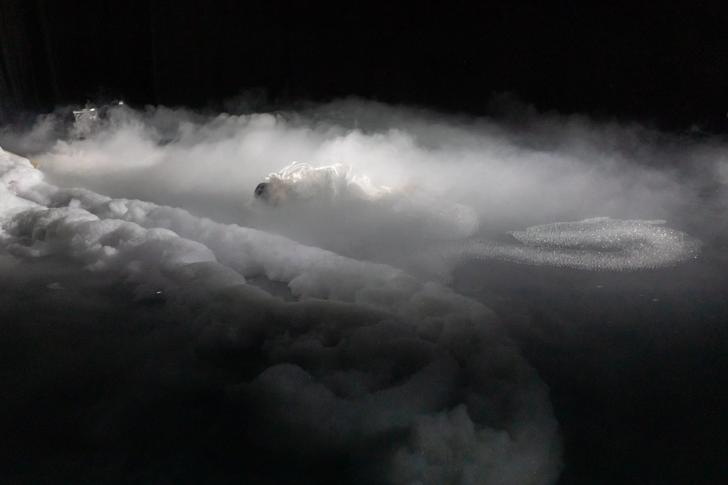 The stage itself becomes the performer. Sound, light, projection, water, and smoke become the main characters. Only the audience’s bodies remain—keeping the imagined worlds alive in real time.