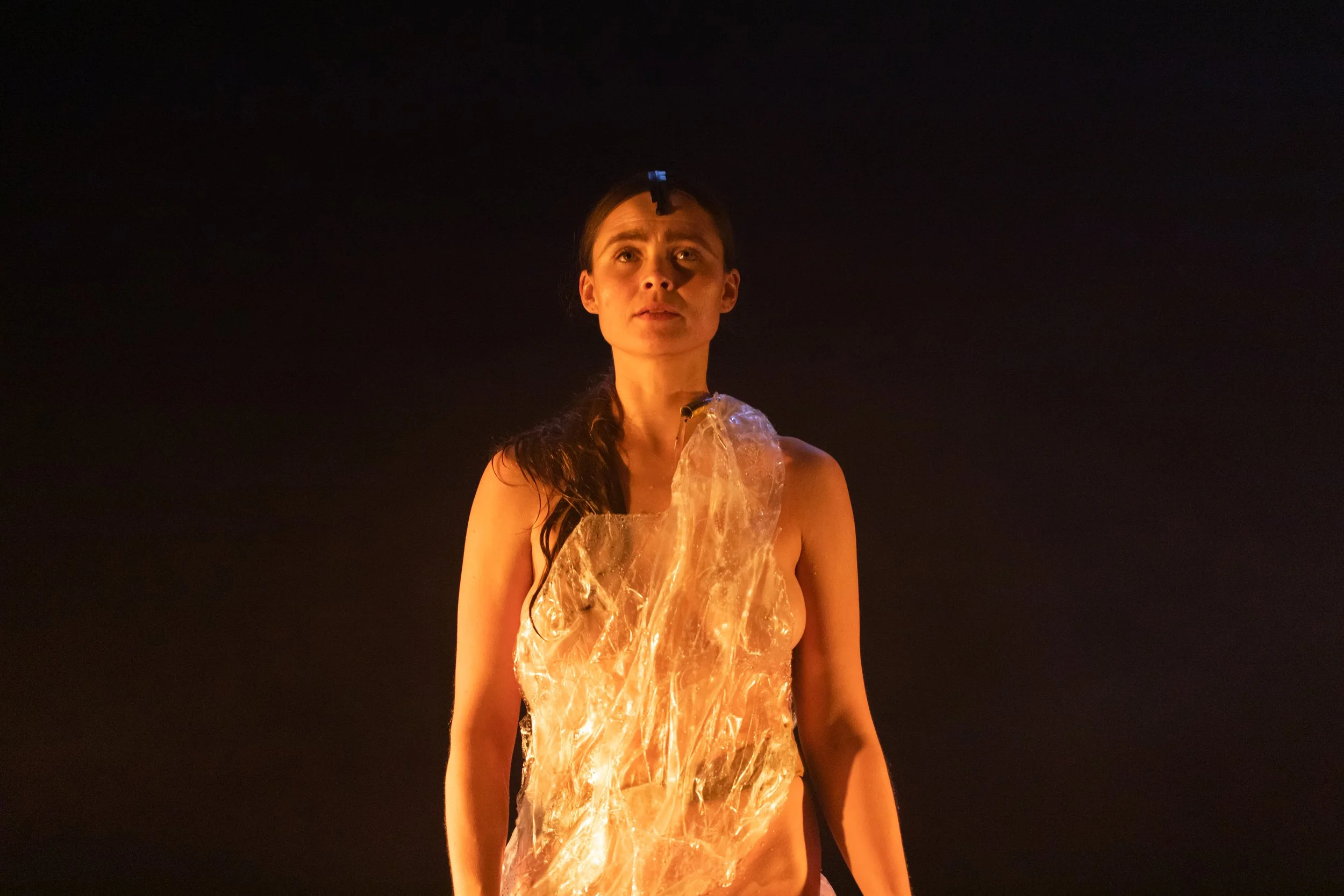 Sérstæðan is an interdisciplinary dance performance where choreography, poetry, music, and scenography merge into one. A being from the future tells her story. She has left her body behind and uploaded herself to the digital ether. She lives only through thoughts and memories of the world that once was.